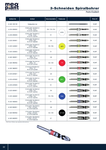 3-Schneiden Spiralbohrer Farb-Codiert Artikel-Nr. Artikel Knochenhärte Farbcode Preis €* 32