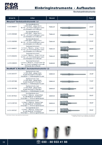 Einbringinstrumente - Aufbauten Sechskantinstrumente Artikel-Nr. Artikel Material Preis €* ® Meoplant Sechskantinstrumente 1,4 0 0 1 0 1 0 01 0 01 0 ® MeoMulti & MeoMini ® Sechskantinstrumente 1,2 01 0 01 0 01 0 01 0 0 0 38 030 - 80 933 41 66