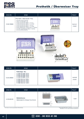 Prothetik / Überweiser Tray Artikel-Nr. Artikel Preis €* Artikel-Nr. Artikel Preis €* Tiefenstopp - Box 1 1 1 1 Artikel-Nr. Artikel Preis €* Edelstahlwanne 40 030 - 80 933 41 66