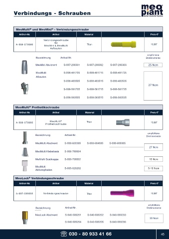 MeoMini Abutment S-007-290301 S-007-290302 S-007-290303 25 Ncm